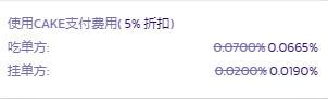 使用 CAKE 来支付交易手续费，将在此之上享受 5% 的折扣。即费率是：