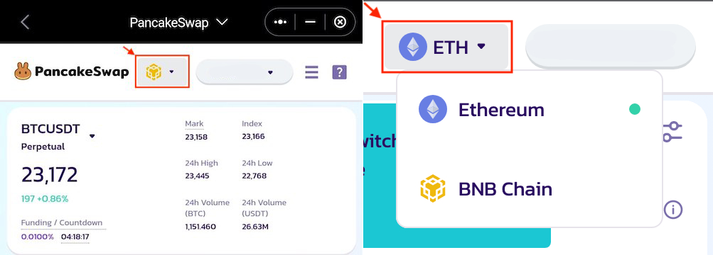<figure><img src="https://1550583249-files.gitbook.io/~/files/v0/b/gitbook-x-prod.appspot.com/o/spaces%2F-MHREX7DHcljbY5IkjgJ-3369173170%2Fuploads%2FQQO7k1PJKrYTcJal9Ula%2Fprepetual-swap-chainprepetual-switch%20chain.jpg?alt=media&#x26;token=1b02f3be-4836-4c9d-9b57-47224992088b" alt=""><figcaption><p>左图：手机版；右图：PC 版</p></figcaption></figure>