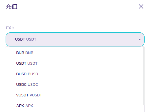 USDT、BUSD、APX 或 CAKE（有优惠！）可用作交易抵押品。