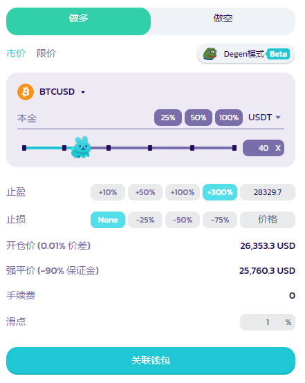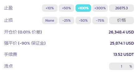 止损: 一旦达到设定的损失盈亏百分比时,用户的仓位将会被平仓。