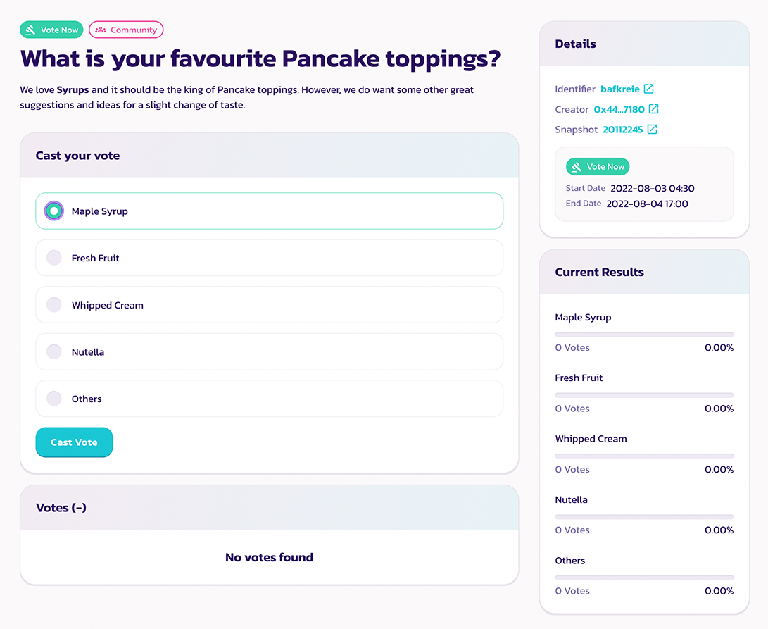 #### ![](https://1147775806-files.gitbook.io/~/files/v0/b/gitbook-x-prod.appspot.com/o/spaces%2F-MHREX7DHcljbY5IkjgJ-3224365849%2Fuploads%2FEi2xMd5hiBdd5uTVDy4n%2Fimage.png?alt=media\&token=6199d047-3127-4951-9dcd-776aedca2c02) <a href="#confirm-and-cast-your-vote" id="confirm-and-cast-your-vote"></a>